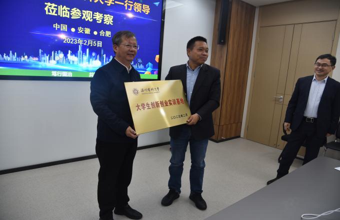 座谈会最后,程锦国书记为我司颁发大学生创新创业实训基地的牌匾,并授于公司董事长赵立军及新药研发中心总经理金秋,药品营销控制管理中心总经理王有军,资本运营控制管理中心叶晓林,质量生产控制管理中心总经理张亚民,药品营销控制管理中心王贺,质量生产控制管理中心吴海林,人力资源运营管理中心郭玉华等人创新创业导师聘书。